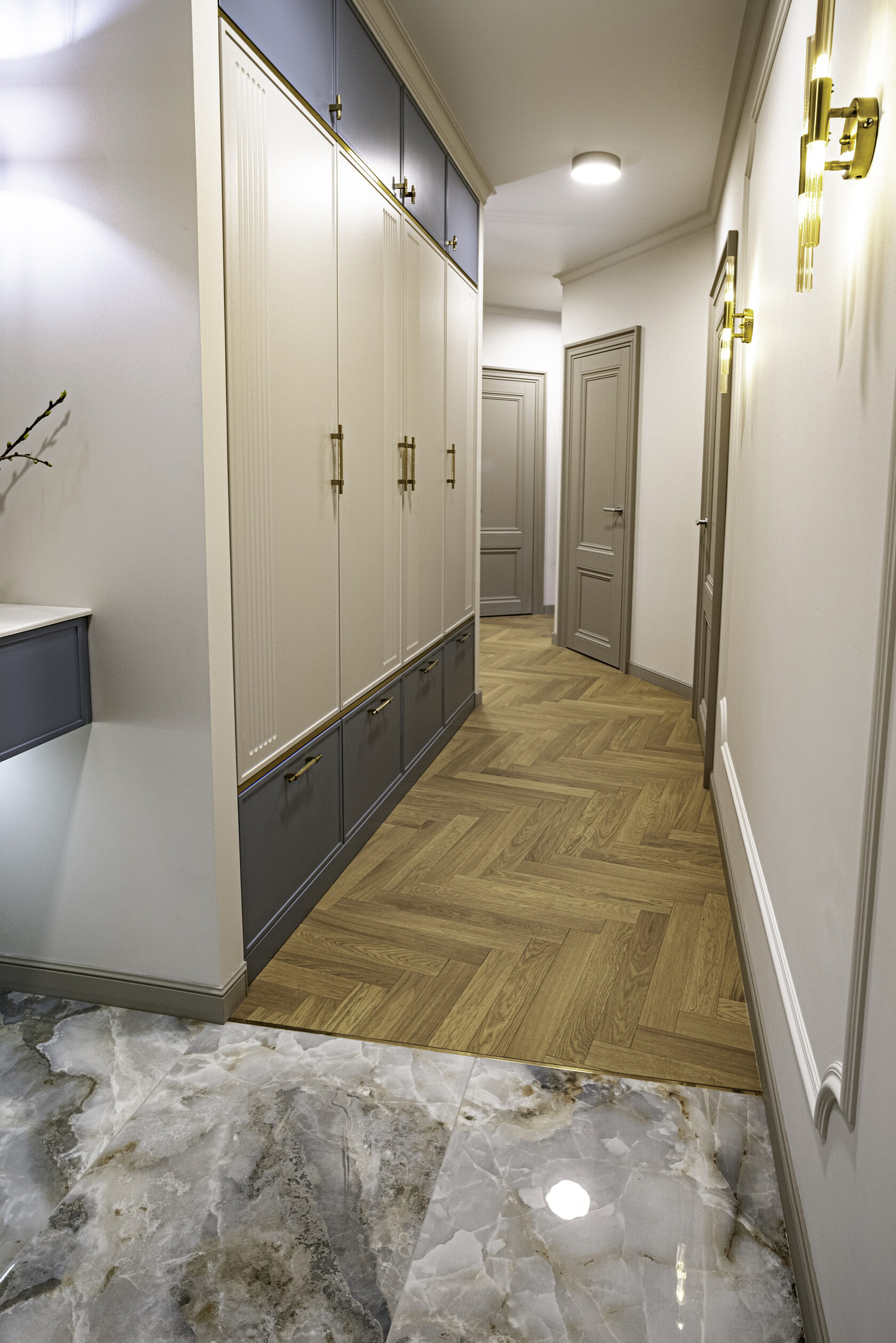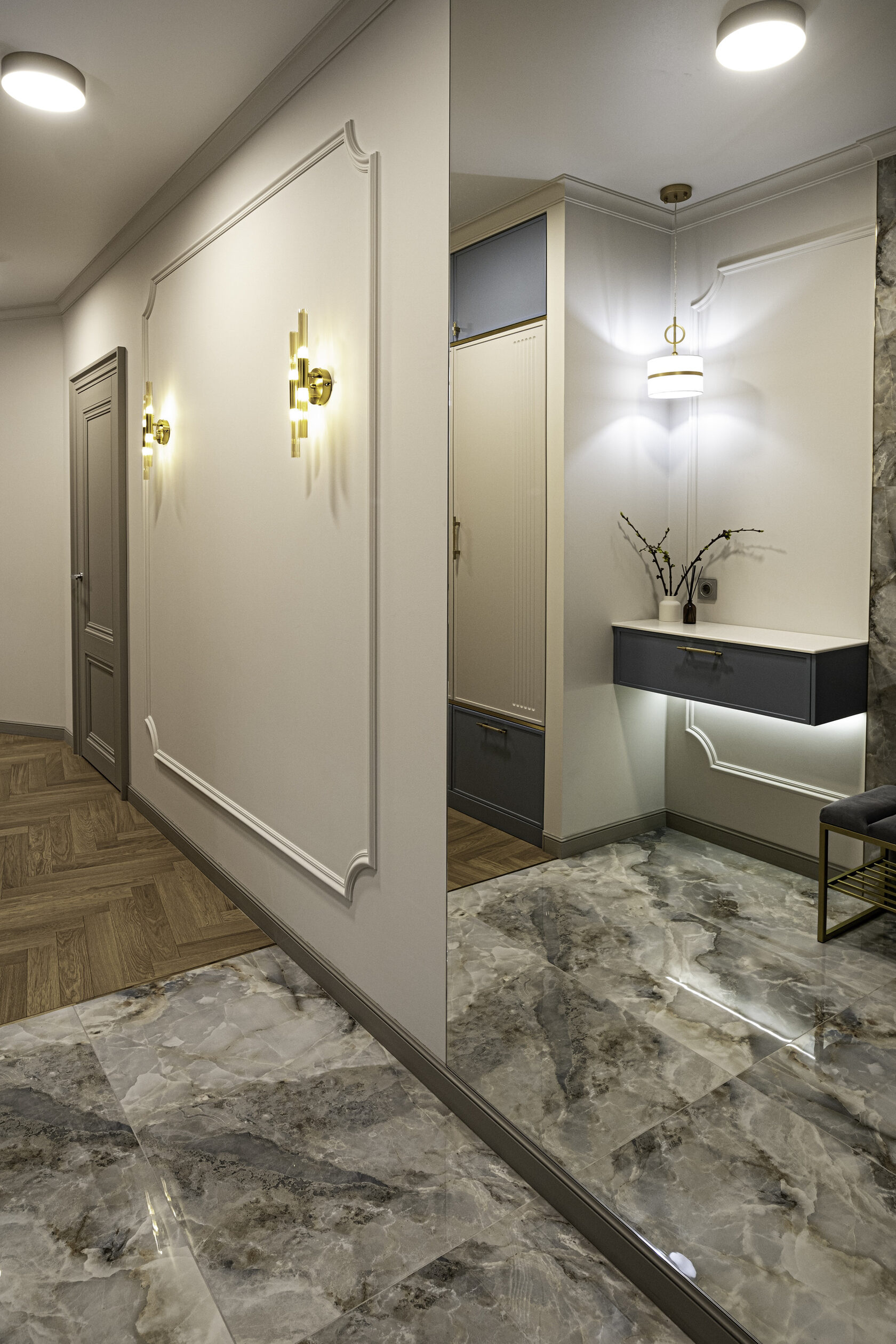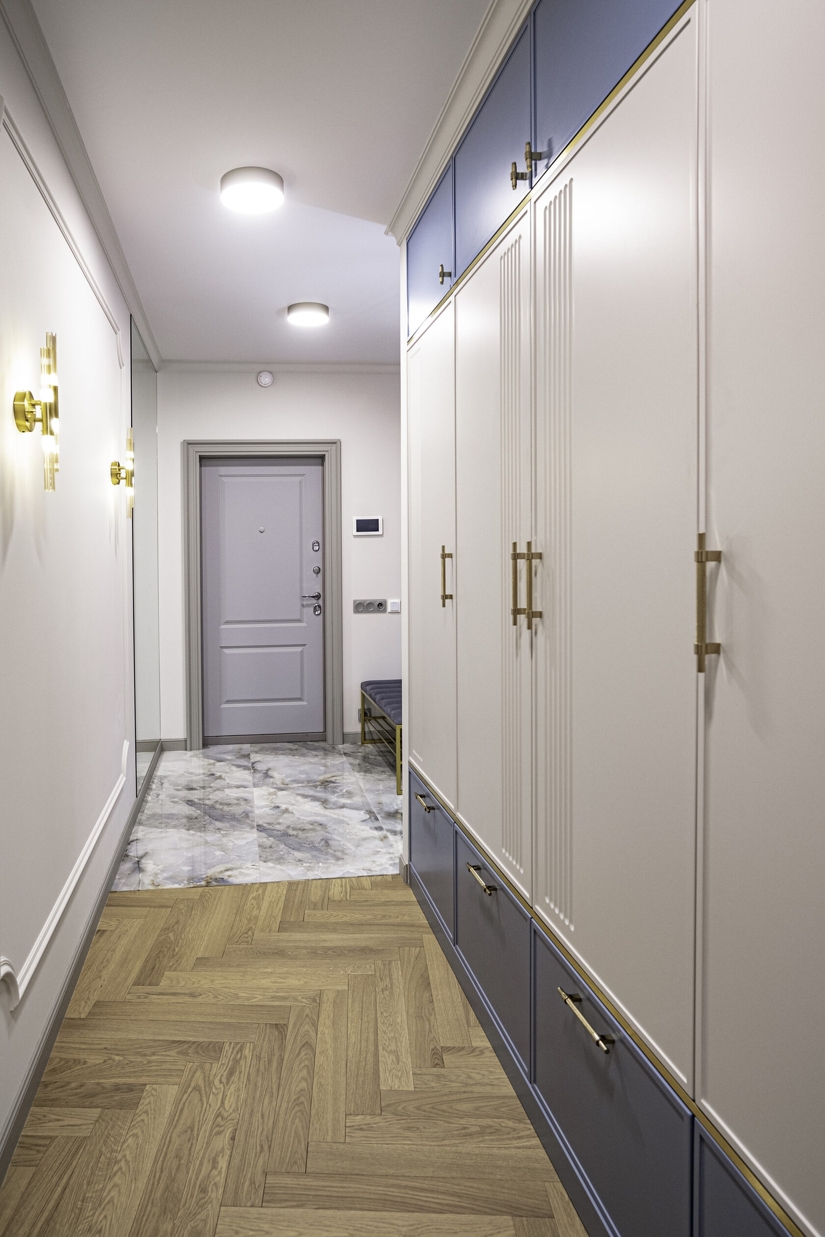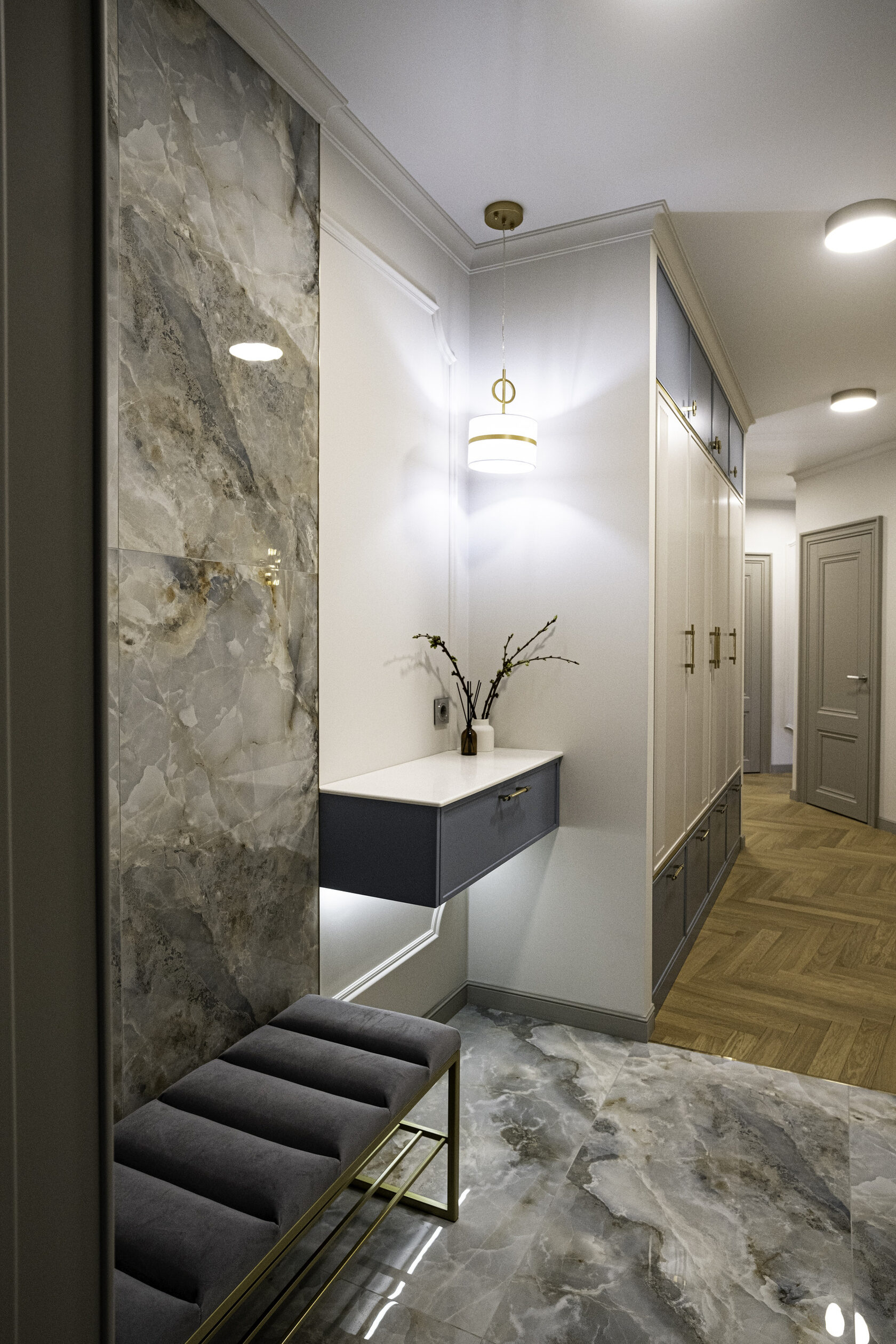 Проект для взрослой семейной пары. Когда все дети уже взрослые и живут отдельно, то квартира нужна просто для удовольствия и комфортной жизни. Именно поэтому в этой квартире очень много воздуха и есть место для всего: отдельная столовая и гостиная, зоны хранения, большие санузлы, просторные спальни.