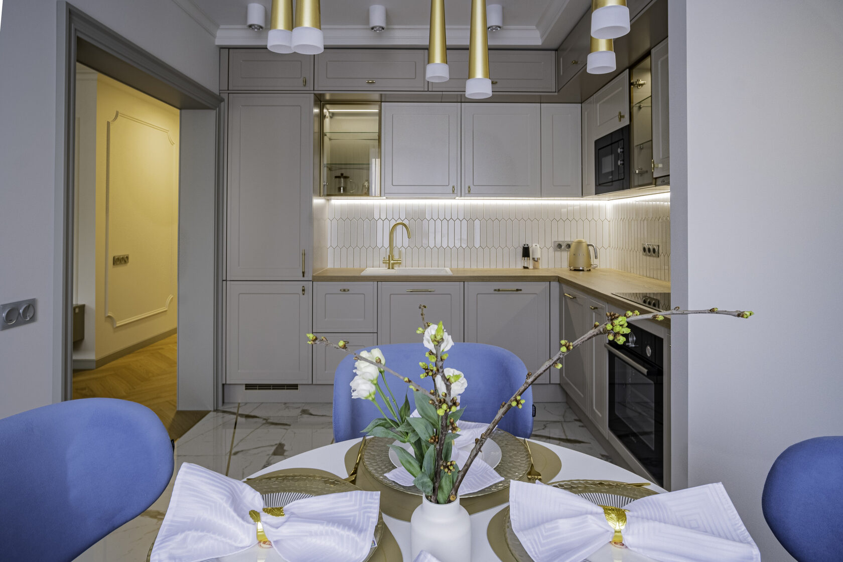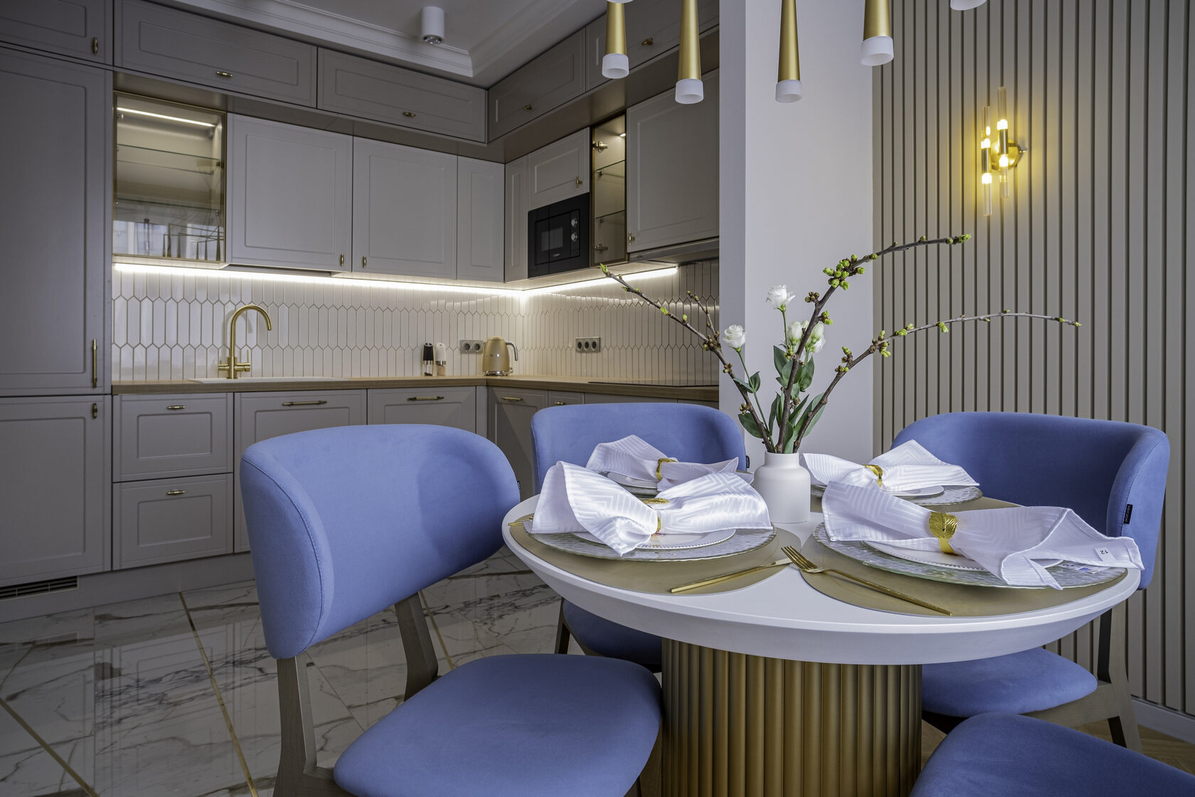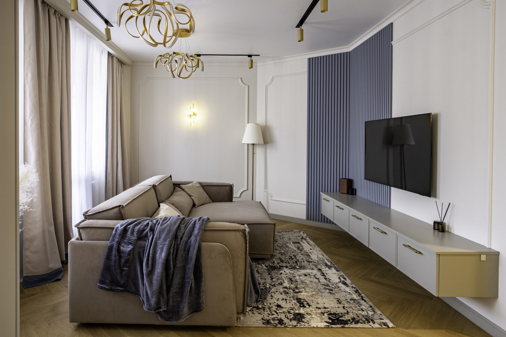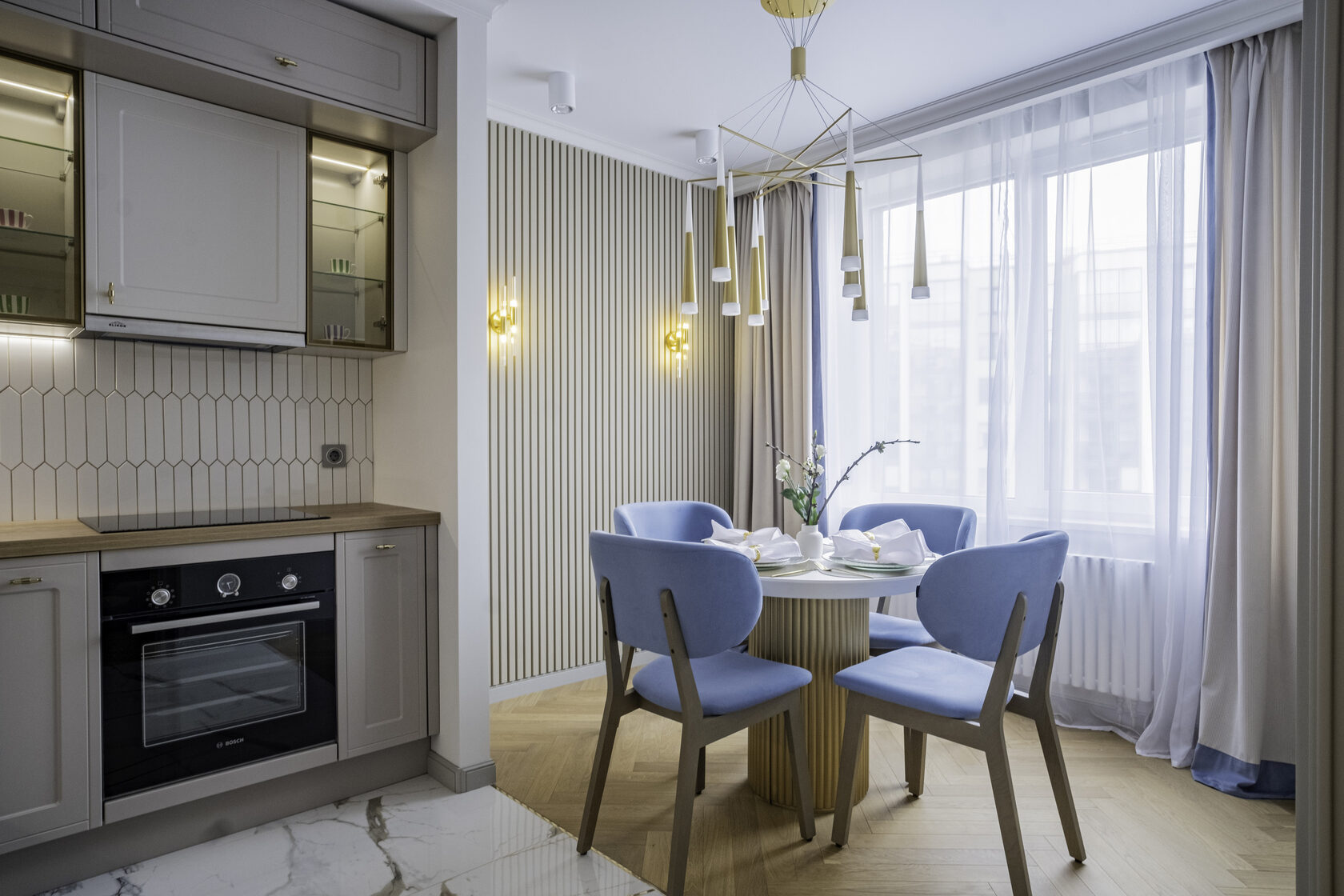 Проект для взрослой семейной пары. Когда все дети уже взрослые и живут отдельно, то квартира нужна просто для удовольствия и комфортной жизни. Именно поэтому в этой квартире очень много воздуха и есть место для всего: отдельная столовая и гостиная, зоны хранения, большие санузлы, просторные спальни.