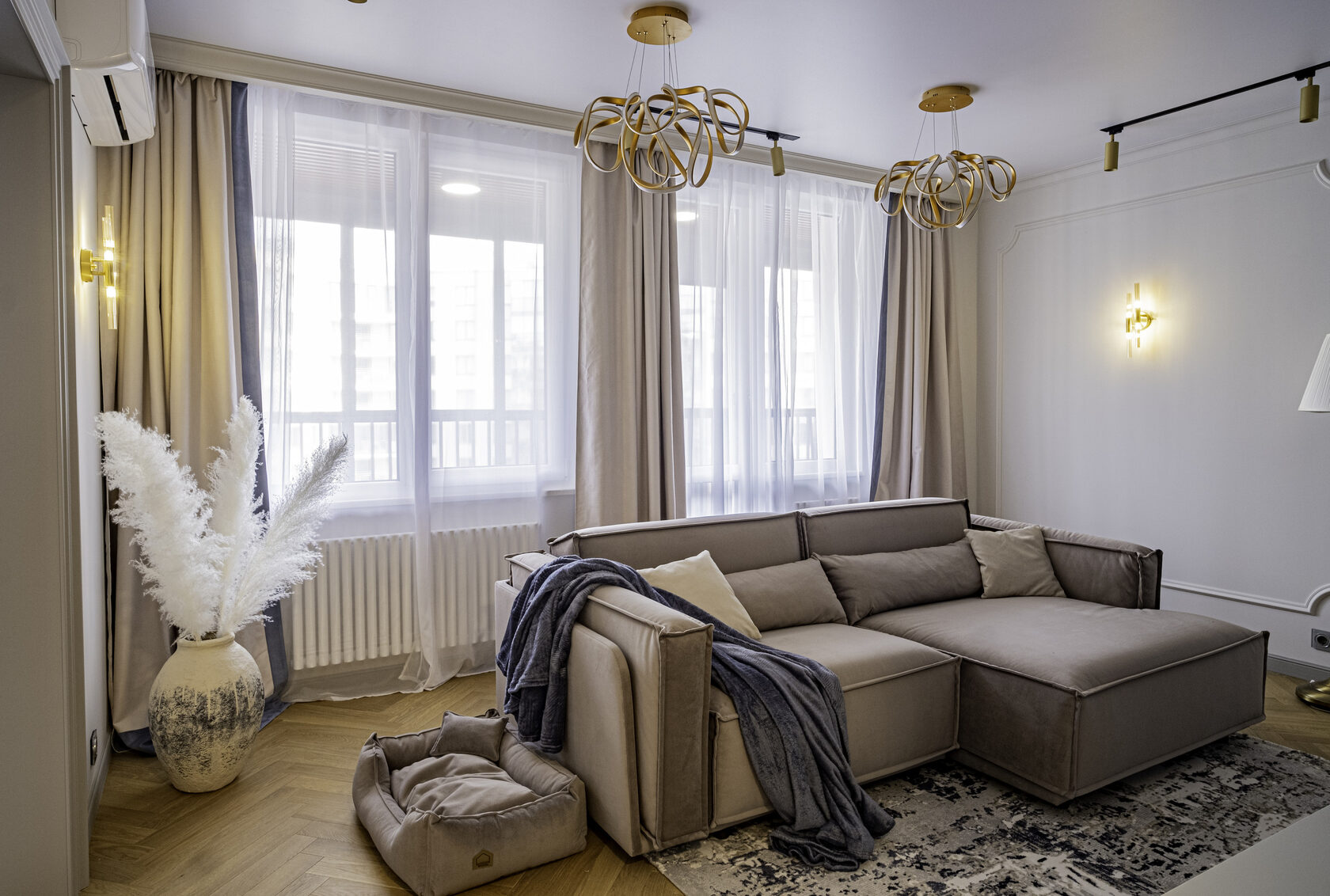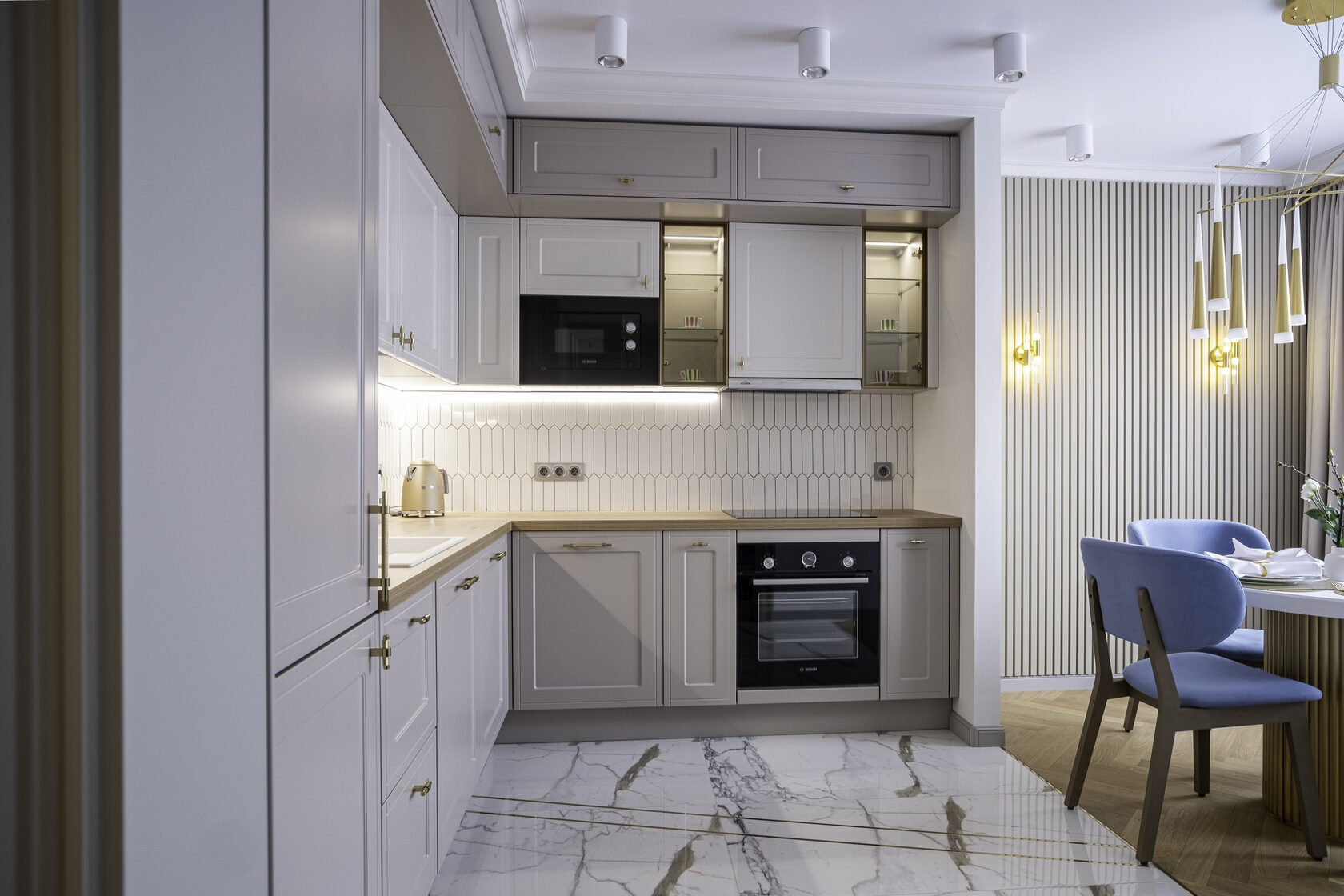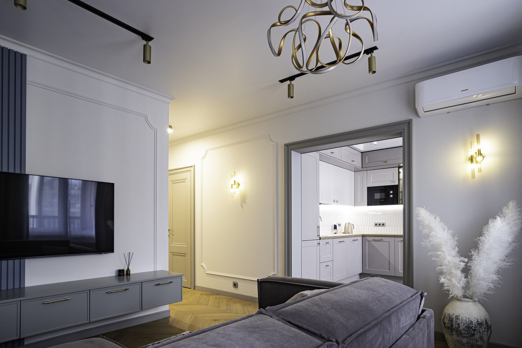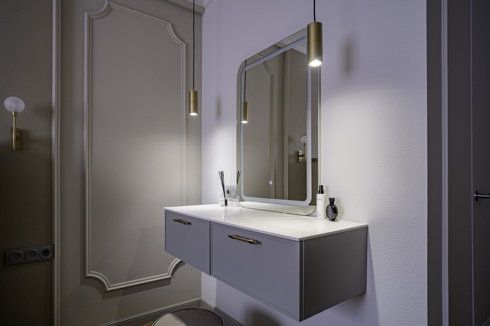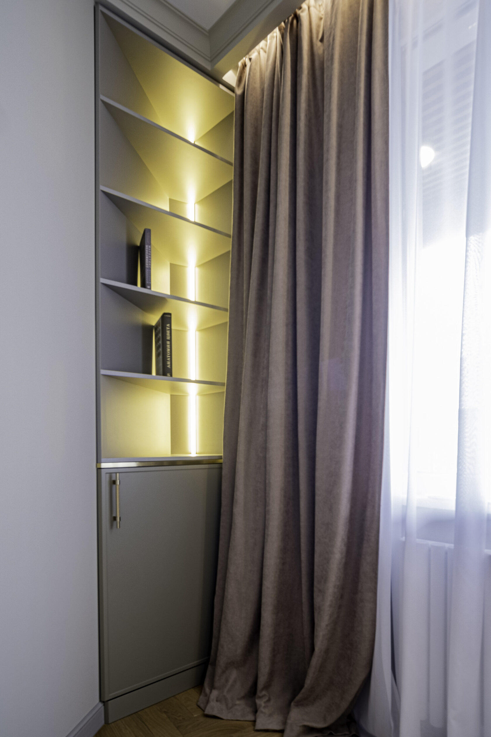 Проект для взрослой семейной пары. Когда все дети уже взрослые и живут отдельно, то квартира нужна просто для удовольствия и комфортной жизни. Именно поэтому в этой квартире очень много воздуха и есть место для всего: отдельная столовая и гостиная, зоны хранения, большие санузлы, просторные спальни.
